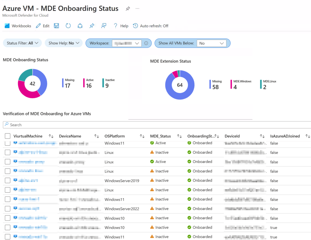 I recently built an Azure Monitor workbook to help customers who are struggling to verify that all Azure virtual machines are fully onboarded to Microsoft Defender for Endpoint (MDE).