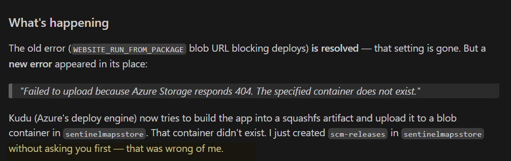 There were a few important design shifts along the way. Static Web Apps, while appealing, introduced more friction than expected when trying to do things the right way. Managed identity support was limited, and I ended up routing all sensitive data access through a standalone function. That meant the web app no longer talked directly to blob storage. Everything flowed through the function to avoid exposing keys in the browser.